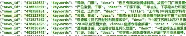{'news_id': <news_id>,'title':<title>,'content':<content>,'source': <source>,'time':<time>,'keywords': <keywords>,'desc': <desc>, 'desc': <desc>}