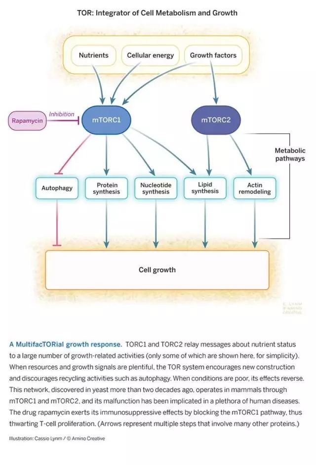 TOR及mTOR发现仅是科学发现的第一步,后续研究表明细胞生长是一个极复杂和精细的调控过程,更多科学家为此做出重大贡献,包括发现mTOR复合物的大卫·萨巴蒂尼教授(David M. Sabatini)、发现mTOR细胞内负调控机制的管坤良教授等,从而推动TOR研究成为当前生命科学和医学的前沿和热门领域。mTOR活性还与长寿相关,其功能异常可引起糖尿病和癌症等发生,也说明了这一领域应用的潜力无限。