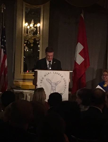 ►拉斯克奖得主霍尔在获奖典礼上,图片来自twitter