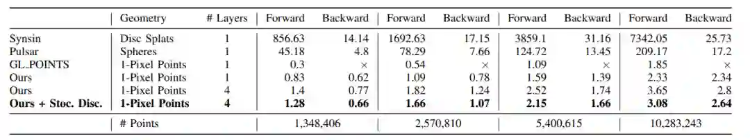 表I:RTX 2080 Ti上1920×1080图像的正向和反向渲染时间(以毫秒为单位)