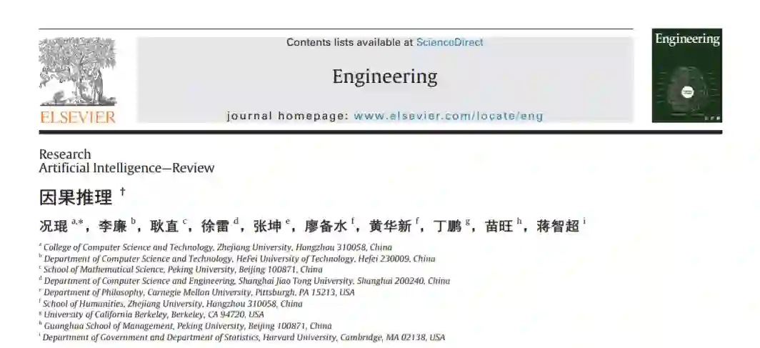 因果推理是解释性分析的强大建模工具,它可使当前的机器学习变得可解释。如何将因果推理与机器学习相结合,开发可解释人工智能(XAI)算法,是迈向人工智能2.0的关键步骤之一。为了将因果推理的知识带给机器学习和人工智能领域的学者,我们邀请从事因果推理的研究人员,从因果推理的不同方面撰写了本综述。本综述包括以下几个部分:况琨博士的“平均因果效应评估——简要回顾与展望”,李廉教授的“反事实推理的归因问题”,耿直教授的“Yule-Simpson悖论和替代指标悖论”,徐雷教授的“因果发现CPT方法”,张坤教授的“从观测数据中发现因果关系”,廖备水和黄华新教授的“形式论辩在因果推理和解释中的作用”,丁鹏教授的“复杂实验中的因果推断”,苗旺教授的“观察性研究中的工具变量和阴性对照方法”,蒋智超博士的“有干扰下的因果推断”。