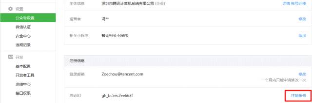 微信公众号可自主注销