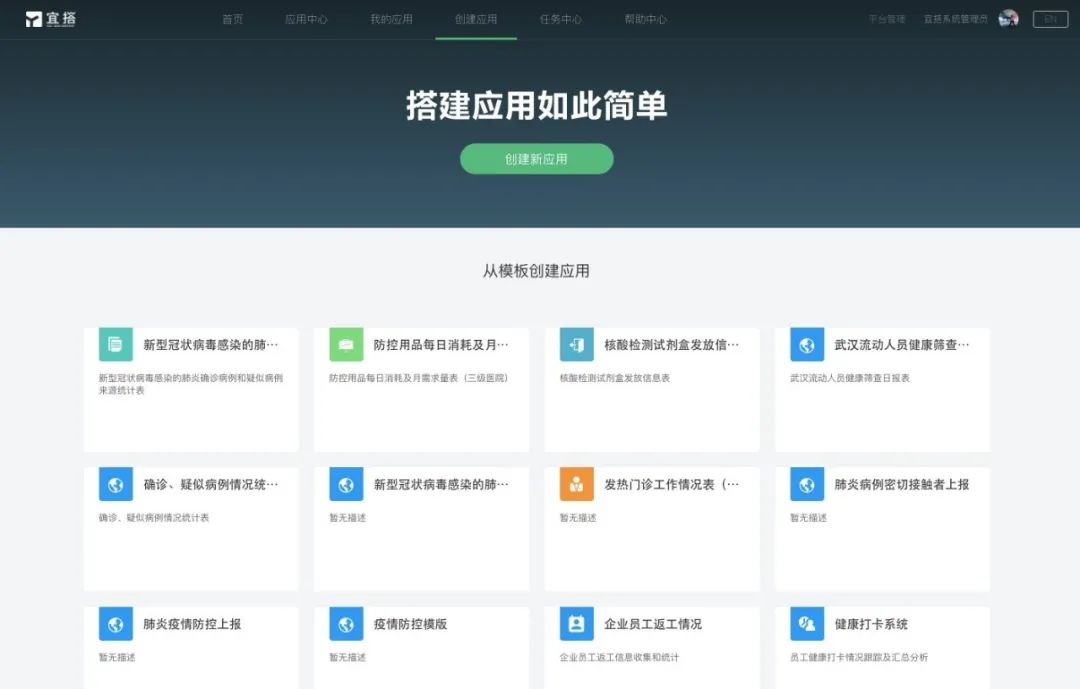 “新型肺炎疫情防控管理系统”的快速上线离不开一个重要的技术支持“伙伴”——宜搭。