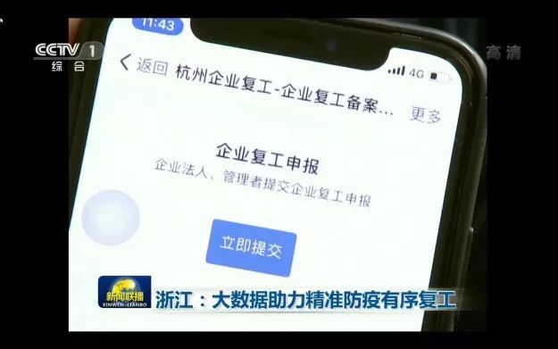 今天的《新闻联播》报道了“杭州市企业复工申报平台”。