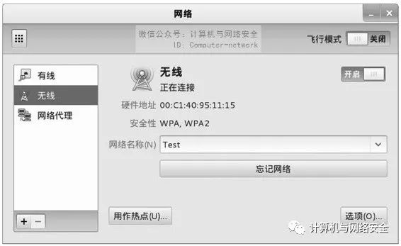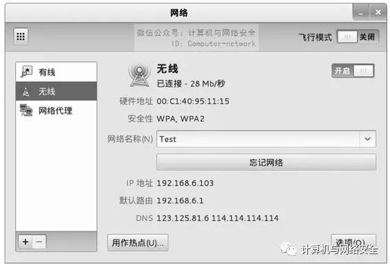 (3)从该界面左侧框中,可以看到有线、无线和网络代理3个选项。这里选择“无线”选项,将显示如图6所示的界面。