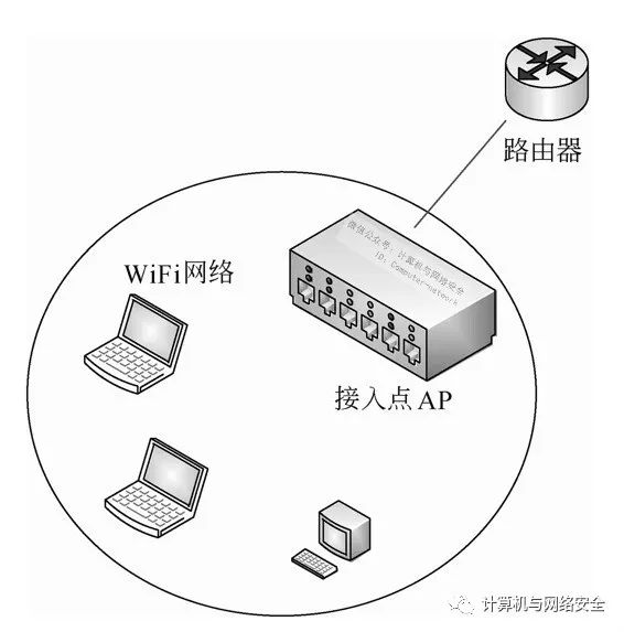 WiFi网络由无线网卡、无线接入点(AP)、计算机和有关设备组成,其拓扑结构如图1所示。