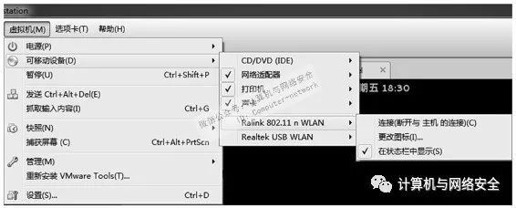 (2)在该界面依次选择“虚拟机”|“可移动设备”|Ralink 802.11 n WLAN|“连接(断开与主机的连接)(C)”命令后,将显示如图3所示的界面。