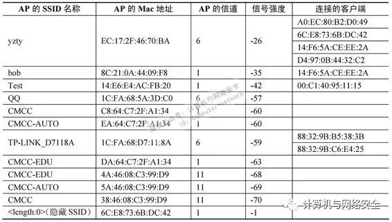 ● ENC:使用的加密算法体系。OPN表示无加密。WEP?表示WEP或者WPA/WPA2,WEP(没有问号)表明静态或动态WEP。如果出现TKIP或CCMP,那么就是WPA/WPA2。