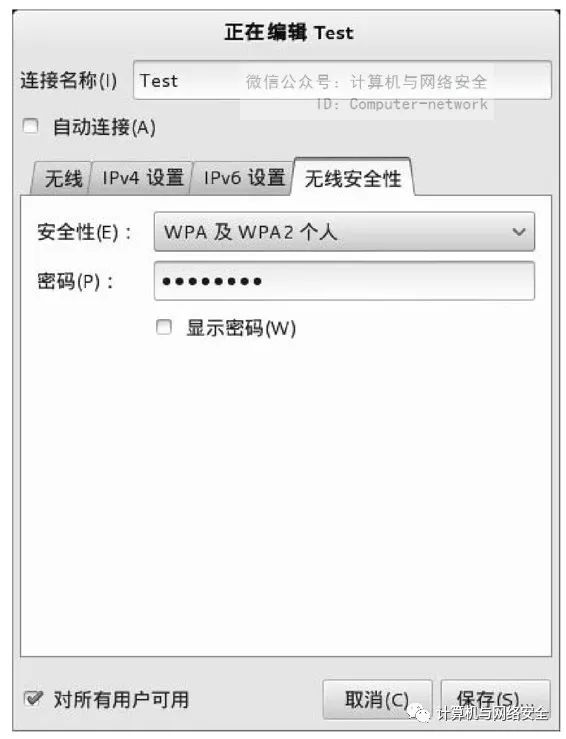 (5)在该界面输入Test无线网卡的加密方式和密码。这里默认密码是以加密形式显示的,如果想显示密码的话,将“显示密码”前面的复选框勾上。然后单击“保存”按钮,将开始连接Test无线网络。连接成功后,显示界面如图8所示。