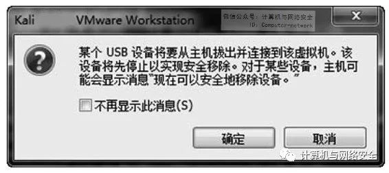 (3)该界面是一个提示对话框,这里单击“确定”按钮,该无线网卡将自动连接到虚拟机操作系统中。然后,用户就可以通过该无线网卡连接搜索到的无线网络。