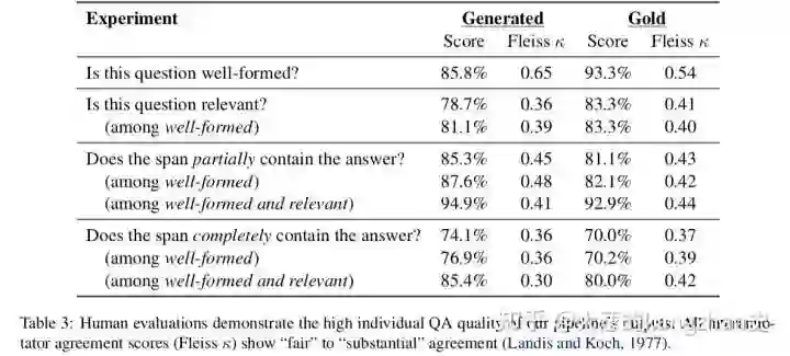 在训练时,我们使用这些数据集中的真实答案范围作为问题生成器的输入。将输入段落中的所有单个句子视为潜在的答案范围(以生成一般和具体问题),以及所有实体和数字(仅针对具体问题)。