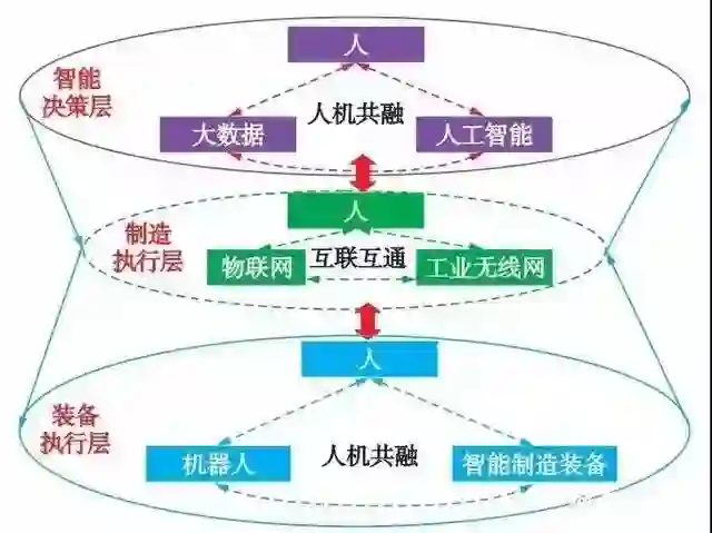 现代新信息技术使人能够“再进入”生产系统。人将在物理层、执行层、决策层与制造系统加强介入与合作,实现人、智能制造装备与机器人在制造过程中的合作。