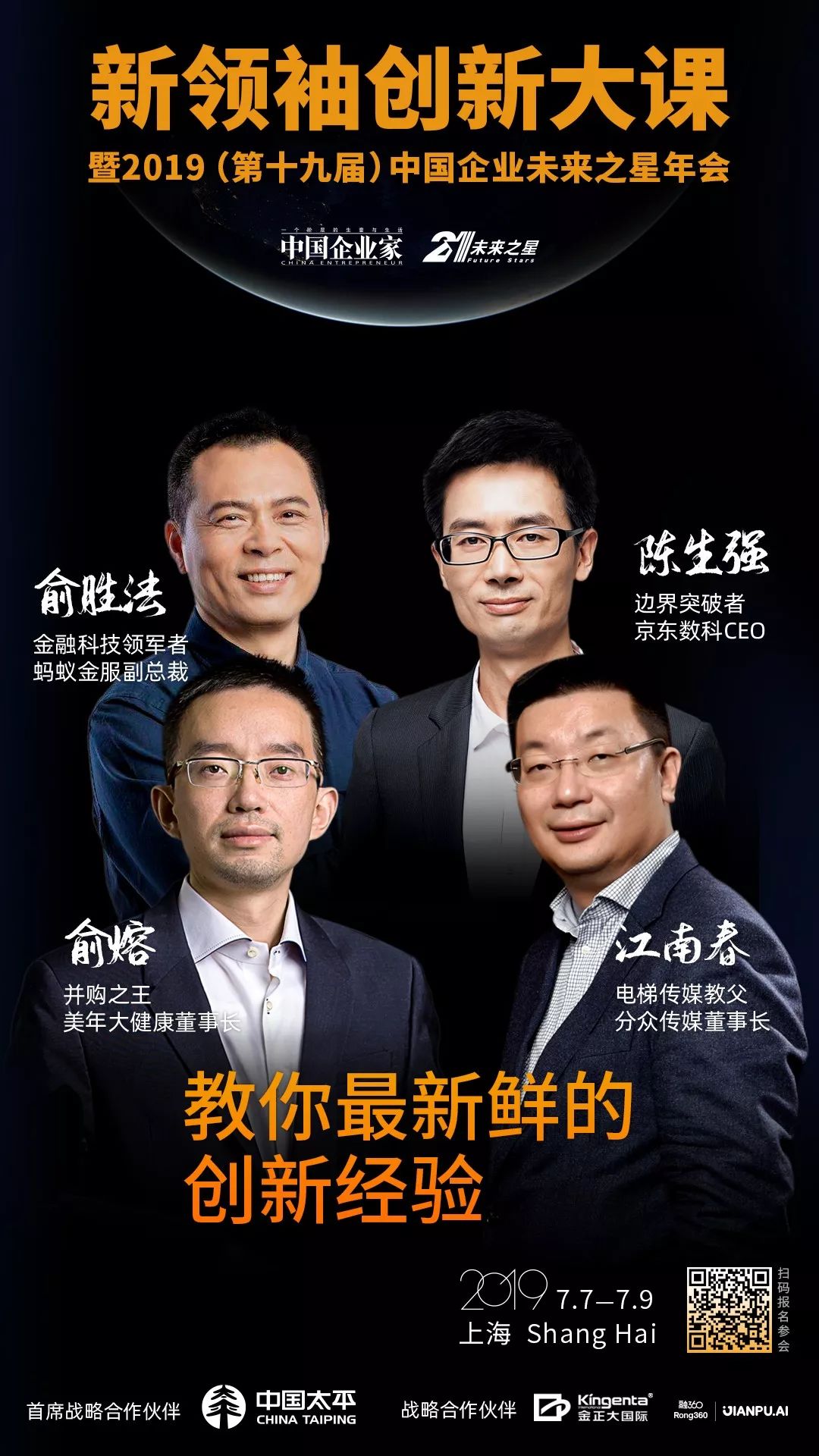 7月7日至9日,新领袖创新大课暨2019(第十九届)中国企业未来之星年会将在上海举行。2天4大模块18堂创新大课,半天新领袖标杆企业实地拜访、高管团队私密分享,就等你来。点击下图直接报名 ▼▼▼