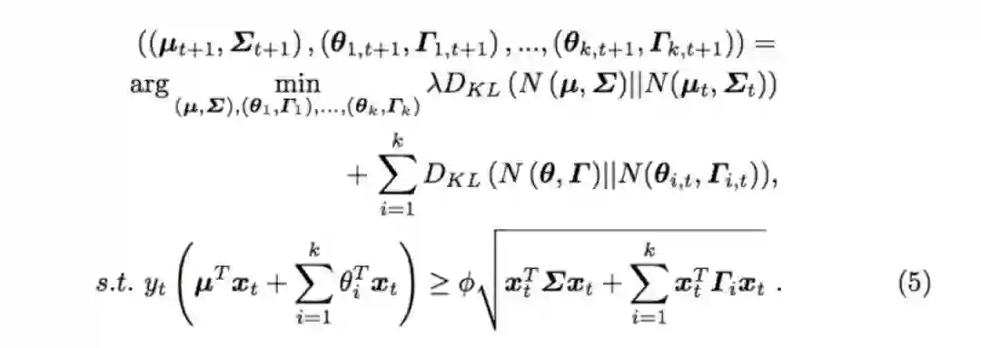 。我们将SCW算法中优化函数扩展为多个分类器的优化函数,如下: