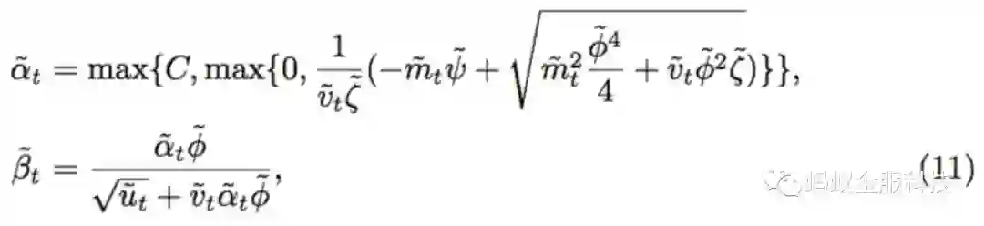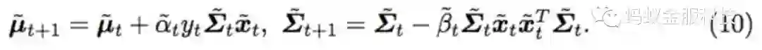 公式(9)和SCW算法的目标函数类似,模型参数的更新公式如下: