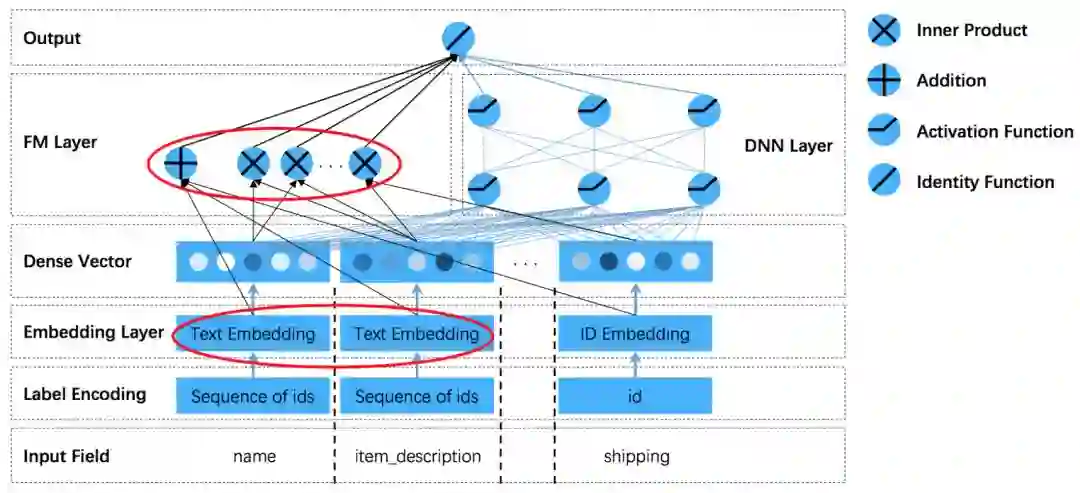 此外,我们对DeepCTR系列算法做了一些改进。为了使DeepCTR模型更具通用性,我们参考了Kaggle竞赛:Mercari Price Suggesion中4th方案的做法,具体包括: