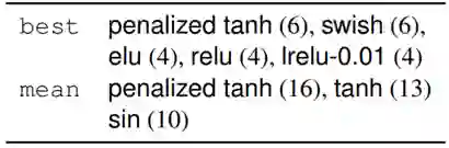 我们发现,在这些不同的任务上,一种很大程度上不为人知的激活函数「penalized tanh」(Xu et al., 2016)表现最稳定。我们还发现它能在 LSTM 单元中成功替代 tanh 和 sigmoid。我们进一步发现 Ramachandran et al. (2017) 中发现的大多数表现优异的函数在我们的任务上表现不佳。但 swish 是一个例外,它在多个任务上都表现不错,但并没有 penalized tanh 与其它函数稳定