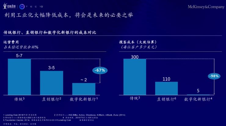比如全面的数字化,会让银行面临很多的技术挑战和整合的挑战。在这过程当中,我们也需要去了解在生态圈里面其他参与者的业务发展进度,了解那些以客户为中心的银行如何为他们的客户使用体验提供额外的价值,并且跟上服务跟整合的进度。也可以顺应工业化进程的潮流从而降低银行业的现有成本,这会是银行未来增加利润跟投资回报率的一个重要举措。