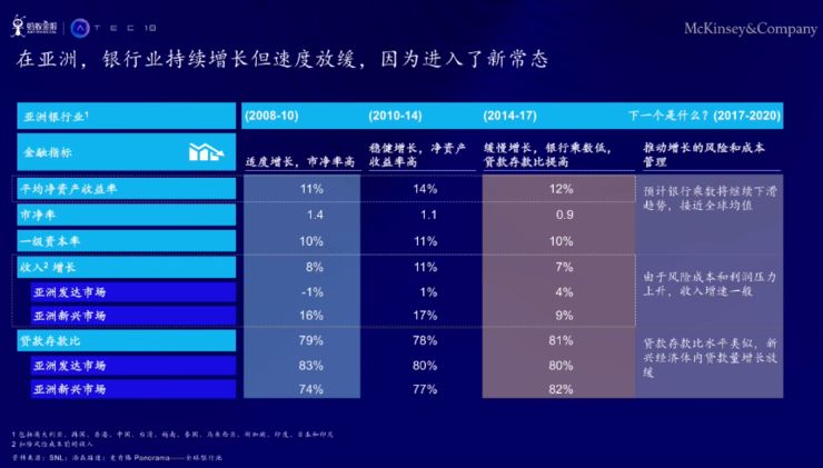 先聚焦亚洲。确实还在持续发展,但是速度也确实放缓,所以有一些让人担忧的信号。整个银行业虽然说现在比较稳定,但是未来肯定会遇到很大的挑战,其中最大的挑战不是来自资产,而是利润率,这对于回报率来说是非常大的压力。