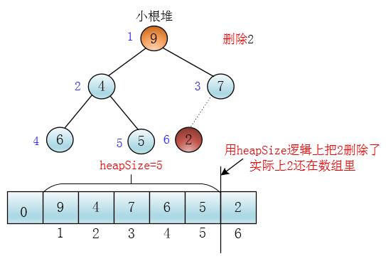 这里我用一个heapSize变量记录堆中元素的个数,交换后heapSize减一
