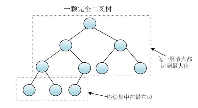 所谓完全二叉树,简单来说,就是除了最后一层外每一层节点数均达到最大值,并且最后一层的节点都连续集中在最左边