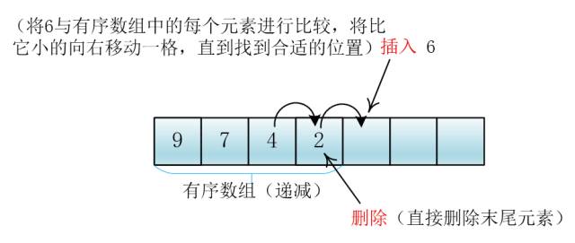 那我可以每插入一个元素后都使整个数组中的元素有序,删除的时候直接删除数组中最后一个元素