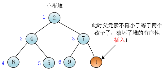 当你插入一个元素的时候,很有可能破坏堆的有序性
