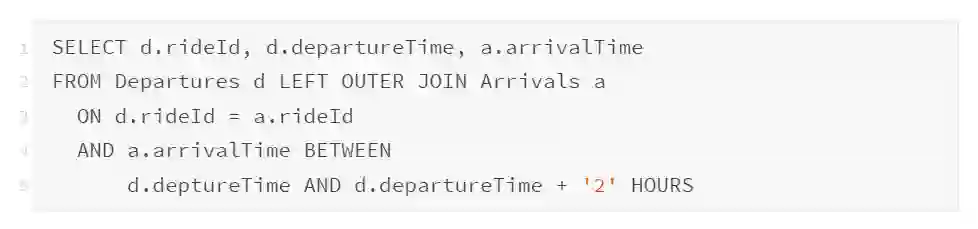 对于不应该在有限时间间隔内连接两个流式表的情况,Flink SQL 提供了非窗口内部连接支持。这样可以实现完全匹配,而这在许多标准 SQL 语句中是很常见的。
