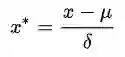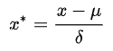 其中μ为所有样本数据的均值,δ为所有样本数据的标准差,所以可以求得: