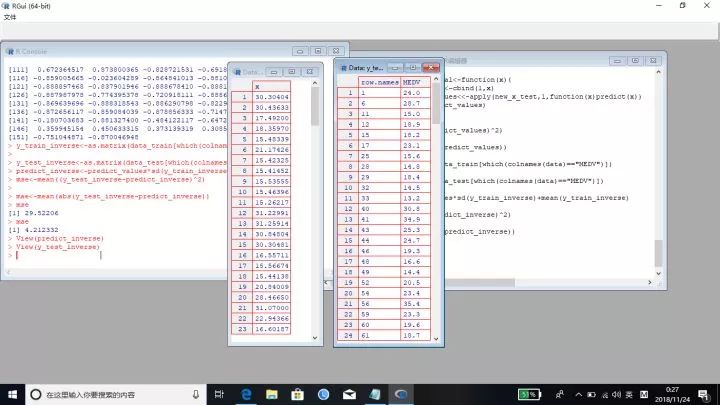 最后再啰嗦几句,这里我们求得的预测值是标准化过后的,所以我们必须要根据公式对归一化的数据进行还原,python可以用sklearn包,但R不加载任何包可以自己写,以标准化归一为例。