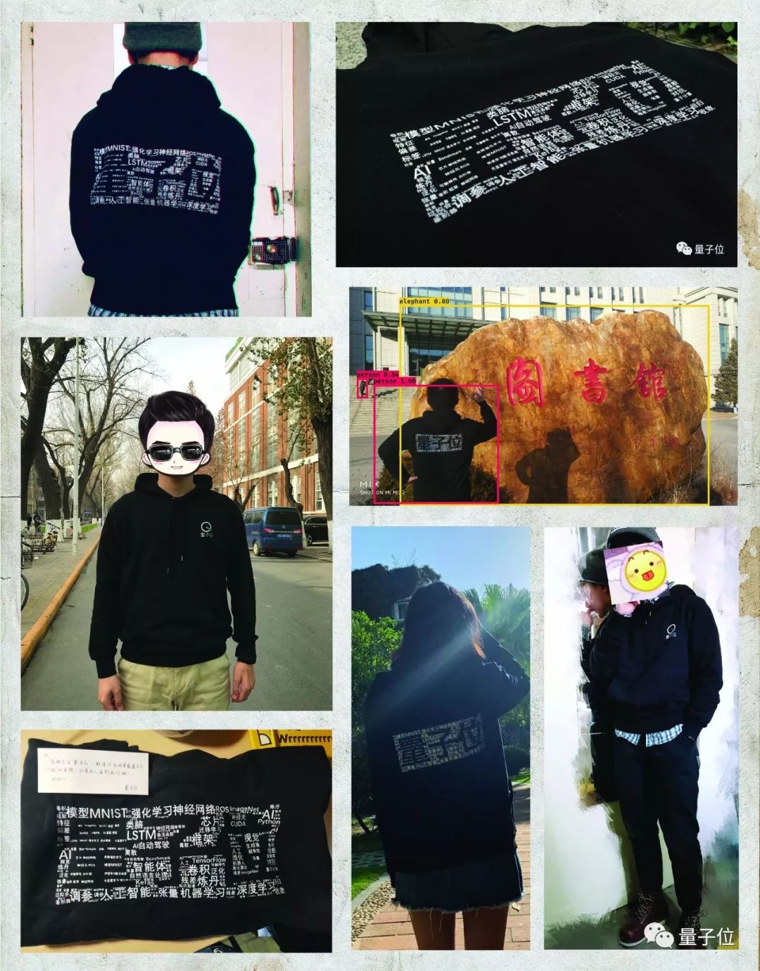 11位获赠量子位厂服的读者粉丝纷纷来图表达对卫衣的喜欢。其中来自哈尔滨工程大学的AI爱好者涂同学穿着量子位厂服拍了一组充满创意的照片。