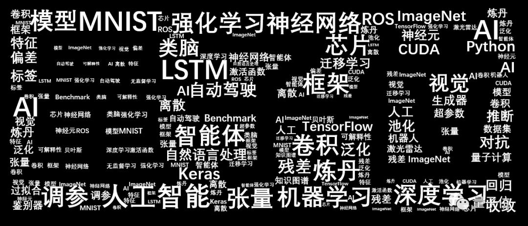 厂服的背面图案是由AI相关词语无规则堆叠,形成镂空的“量子位”。黑色的卫衣印上白色的词语图案,带来的视觉冲击就一个字,酷!