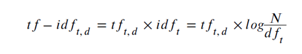 其中tft,d代表t在d中出现的频次,而dft指的是包含t的文档数目,N代表全部文档的数目。