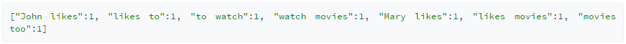 N-gram指的就是把N个连续的词作为一个单位进行处理,例如:“John likes to watch movies.Mary likes movies too.”这句话处理为简单词袋模型后的结果为: