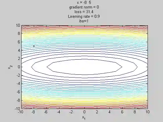 其中m是momentum项(一般设定为0.9)。主要是用在计算参数更新方向前会考虑前一次参数更新的方向,如果当下梯度方向和历史参数更新的方向一致,则会增强这个方向的梯度,反之,则梯度会衰退。然后每一次对梯度作方向微调。这样可以增加学习上的稳定性(梯度不更新太快),这样可以学习的更快,并且有摆脱局部最佳解的能力。如下图所示: