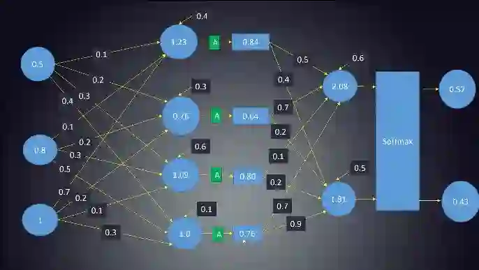 神经元:神经元是包含权重和偏置项的函数,等待数据传递给它们。接收数据后,它们执行一些计算,然后使用激活函数将数据限制在一个范围内