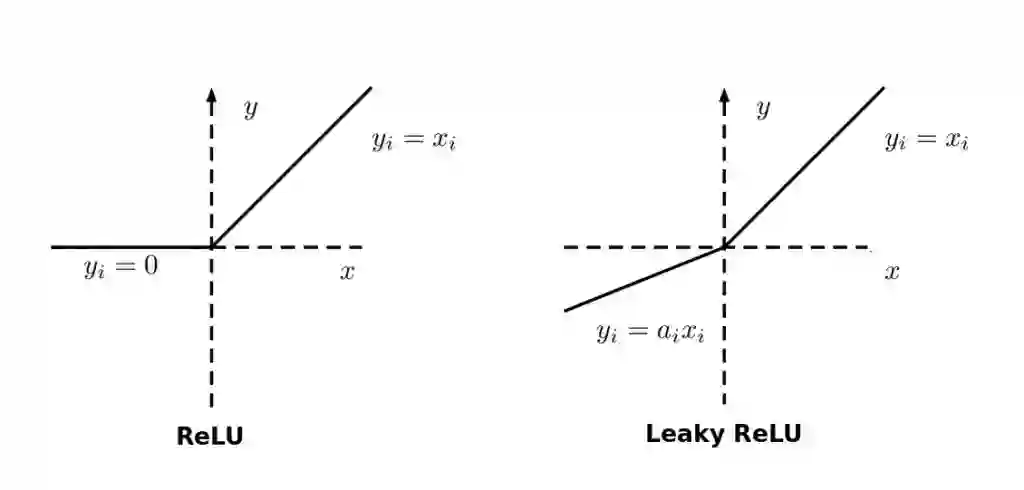 如果神经网络中存在大量死亡神经元,则其性能是受到影响,这可以通过使用所谓的Leaky ReLU来纠正,其中Leaky ReLU的斜率 x=0 的左侧发生变化,从而扩展ReLU的范围。