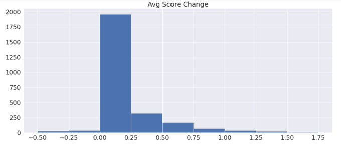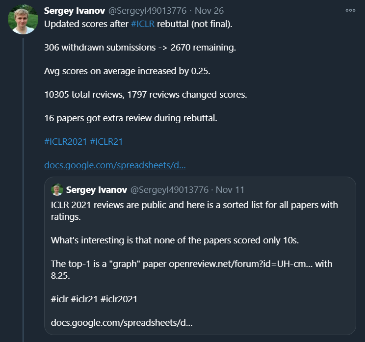 在 Rebuttal 环节之后,Criteo AI Lab 研究科学家 Sergey Ivanov 在自己的推特上展示了论文评分变化的统计结果: