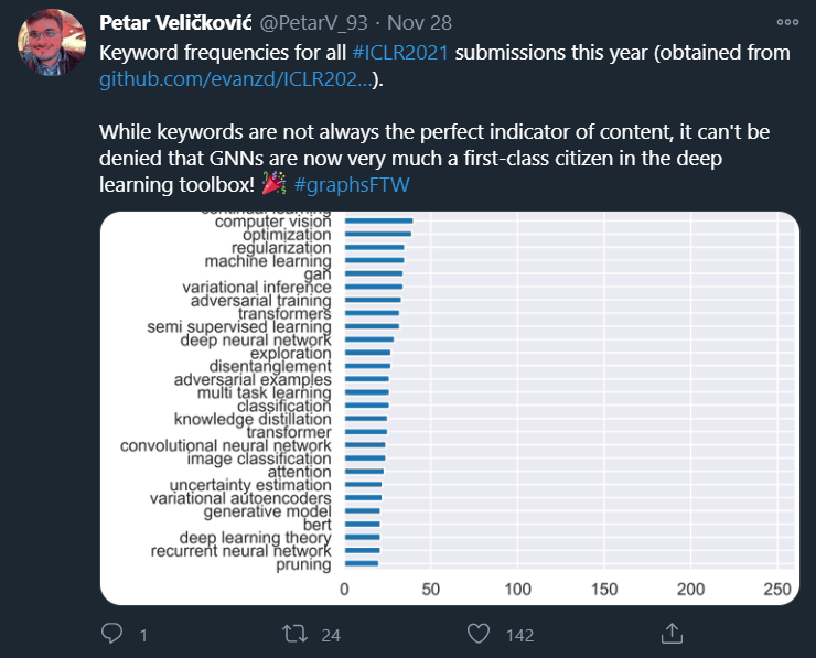 观察近年来的统计结果,「图神经网络(GNN)」的热度正在逐年攀升。DeepMind 高级研究科学家 PetarVeličković直言:「不可否认的是,图神经网络已经位于深度学习工具箱中的第一阶梯。」
