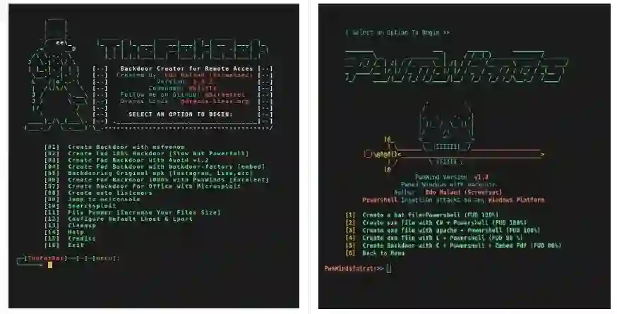 TheFatRat是一种利用恶意软件编译具有著名负载的恶意软件,然后可以在Linux,Windows,Mac和Android上执行该恶意软件。TheFatRat提供了一种轻松创建后门和有效负载的方法,可以绕过大多数防病毒软件。