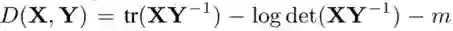 接近 1。由此,就促使 wi 和 wj 接近正交了。(Xie et al., 2017b)提出的一种用于衡量两个矩阵之间的「接近度」的方法是使用对数行列式散度(LDD:log-determinant divergence)(Kulis et al., 2009)。两个 m×m 正定矩阵 X 和 Y 之间的 LDD 定义为