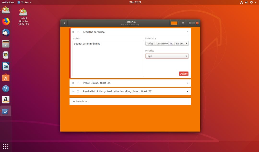 1月份,开发者确认计划将 GNOME To-Do 应用程序添加到 Ubuntu 18.04 的默认应用中。GNOME To Do 提供基本的待办事项和笔记功能,还整合了多种在线服务,使其成为以生产力为重点的 LTS 版本的完美补充。