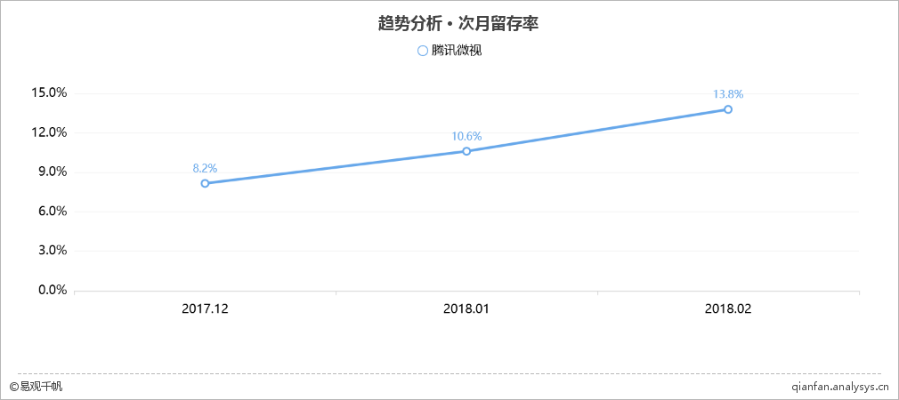 2017年12月-2018年2月腾讯微视APP次月留存率