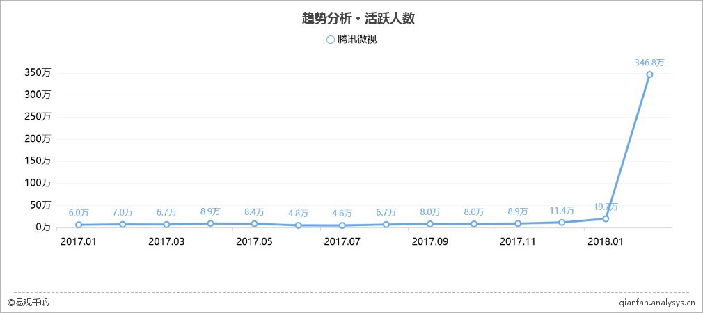 2017年1月-2018年2月腾讯微视APP月活趋势