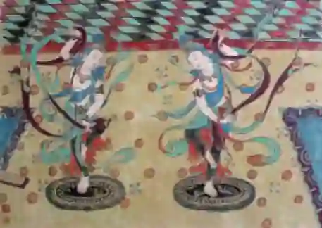 舞蹈大体上不过是转动,所以西方有华尔兹(Waltz, 动词walzen),西域有胡旋舞。大唐时期西域人来长安谋生,胡旋舞是最撩人心魄的,由此产生了许多动人的诗篇,而且似乎也注意到了其中的物理。元稹《胡旋女》中的“寄言旋目与旋心……”提供了旋转特征的初步描述。看唐人的双人胡旋舞壁画(图1),可见舞者的自旋。三维空间的定轴转动,还真分左旋(laevorotatory)与右旋(dextrorotatory)啊。