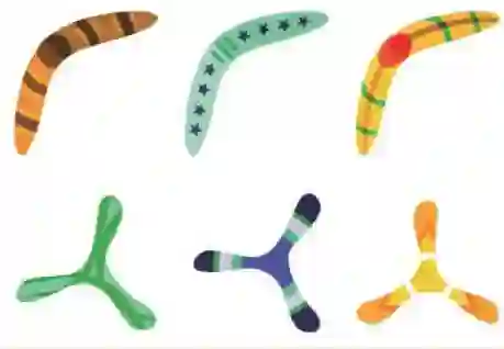 有时候,我们希望一些物体飞出去能自己再回来。镖这种兵器,以平动的方式飞出去,自己是回不来了,所以中国的镖会拴上绳子,谓之绳镖。非洲人希望打猎时镖能自己飞回来,就制作出了回旋镖(boomerang, 飞去来器), 见图2,我怀疑是从某种大树的豆荚得到的启发。
