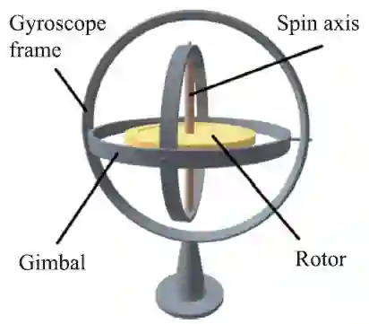 第一个类似gyroscope 的设备是1743 年发明的whirling speculum (转动的镜子)。据说现代意义上的gyroscope是Johann Bohnenberger 于1817 年制作的,中有一个rotating massive sphere (大质量转动球)。之所以用大质量转动球,是因为转动意味着固执,质量越大越固执。将枪炮管内壁刻上膛线,子弹、炮弹出膛是转动的(rotating,spinning),那点儿重力就很难改变其飞行轨迹。1832 年Walter R. Johnson 做出了类似设备,但中间是一个rotating disc。1852 年,法国物理学家傅科( Léon Foucault)把这样的结构用于涉及地球转动的实验里,可以让转动保持大约10 分钟的时间以供观察研究,故名之为gyroscope,看(地球)转。傅科发现高速转动的转子的方向几乎不随外部环境的运动(比如放置陀螺仪的地球的转动)而变。地球是飘在虚空中转动的,在地面上若要用个球或圆盘来演示地球的公转/自转,那就得支撑起来,因此需要gimbals——以马后炮的观点这很容易想到。研究陀螺仪运动特性的理论是绕定点的运动,是刚体动力学的一个分支。