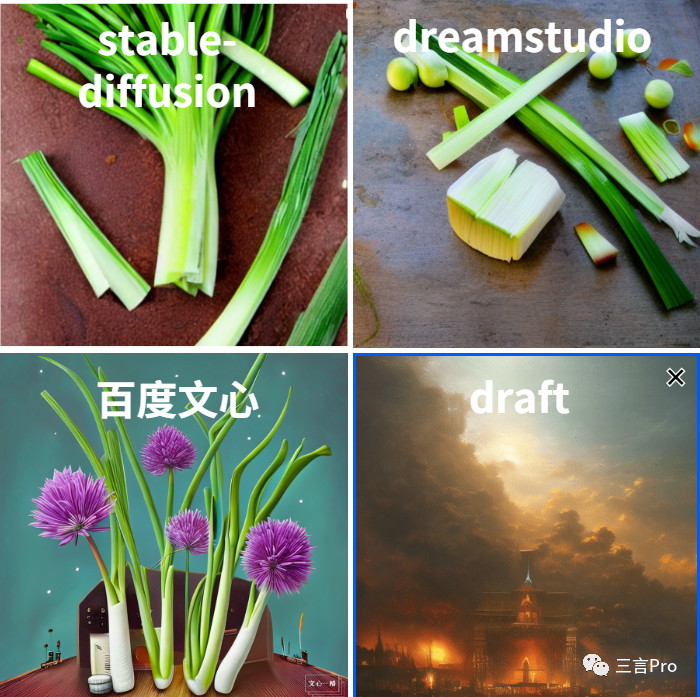 从画面和文字的相关性上看,国外那两家以及百度文心基本都能完整展现文字主要元素;而draft的相关性则相比要低很多,不过也在可接受的范围内。