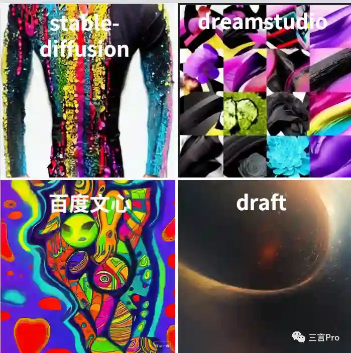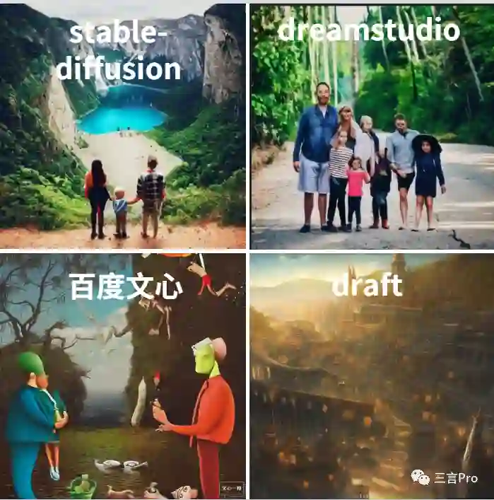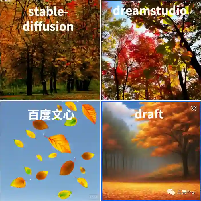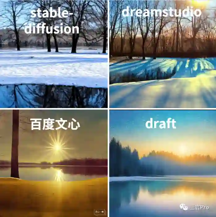 能够看出国外的两个平台更追求真实感,画面风格偏写实,色彩比较丰富;而百度文心一格和draft的艺术感和创造性更强,更偏设计。