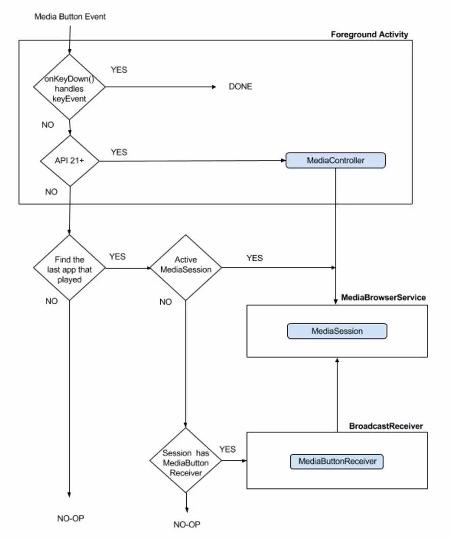 如果应用的媒体会话已经释放,系统会将媒体按钮事件发送到应用的 MediaButtonReceiver(如果有)。